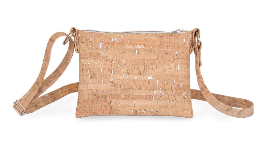 Die Umhängetasche von Hai Vani gibt es in gleich drei Ausführungen. Die Premiumvariante beinhaltet neben dem Reißverschlussfach zwei Kartenfächer. Somit kann der Geldbeutel theoretisch auch zu Hause bleiben. Die Kork-Oberfläche sorgt für einen einzigartigen Look. Der Clou: Sie können die Außenfläche sogar mit einer individuellen Prägung versehen lassen.